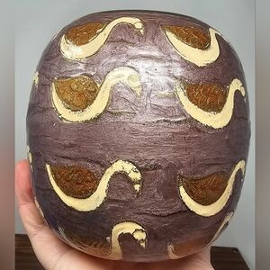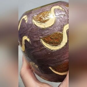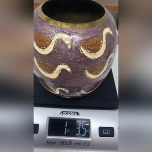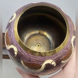 Vintage Brass & Enamel Cloisonne Handpaint Swan Vase Made in India 5" Tall