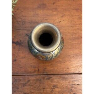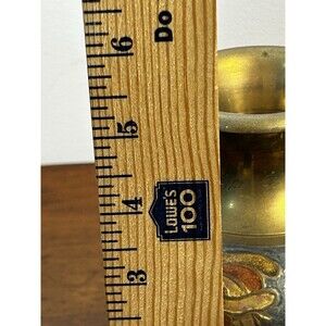 Vintage Brass & Enamel Painted Floral Bud Vase 5” Tall Chipped Paint READ