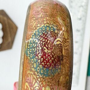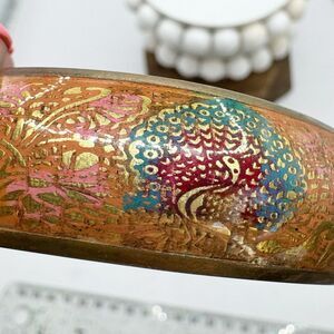 Vintage Brass Enamel Peacock Colorful Bohemian Boho Chunky Bangle Bracelet