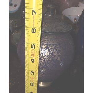 Vintage Brass & Enamel Purple Jar Engraved Handcrafted Lid - 7 X 4"