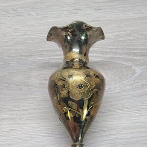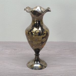 Vintage Brass Etched Engraved Floral Vase Ruffled Edge Made in India