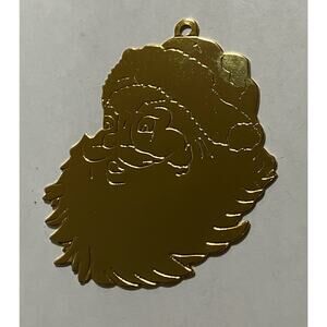Vintage Brass Etched Ornament Santa Claus Face Gloria Duchin 1992 Made in USA