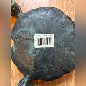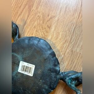 This vintage planter is a unique addition to any collection. Crafted from brass, this frog-shaped planter is perfect for those who love decorative collectibles. Its intricate details make it a great subject for collectors of frog-themed items. The planter is perfect for housing your favorite plants in style, or simply as a standalone piece on a shelf or table. There are some minor wear and tear but still in good shape! Measurements roughly 10.5” X 9.25 X 2.25”L.