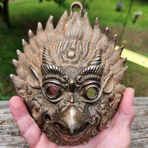 Vintage Brass Garuda Mask Wall Hanging Hindu Mythology Bird Deity Design Intrica