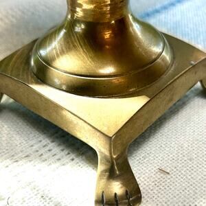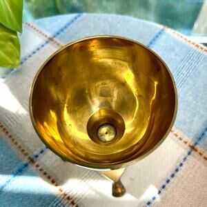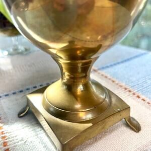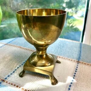 Vintage solid brass goblet featuring a classic rounded cup and an ornate square base with four paw feet. The warm patina and unique design make this piece perfect for display, as a decorative accent, or as part of a vintage brass collection.