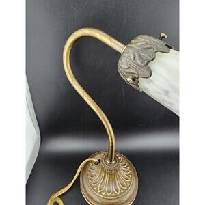 Add a touch of vintage charm to your living space with this beautiful brass gooseneck tulip table lamp light from Andrea Sadek. The lovely pink tulip shade adds a pop of color to any room, while the intricate brass detailing give it an elegant touch. This lamp is perfect for accent lighting, and the light sensor type ensures that it will automatically turn on when the room gets dark. The gooseneck feature allows you to adjust the lighting angle to suit your preferences. Made with high-quality materials, this lamp is sure to last for years to come.