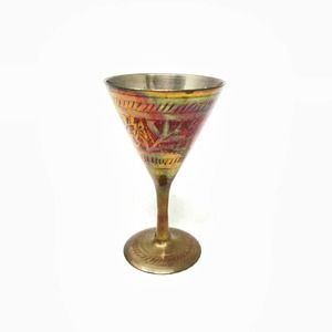 Vintage Brass Hand carved Painted Goblet Cup Gold Red