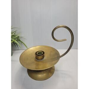 Vintage Brass Hurricane Candle Holder, Curved Handle Colonial Chamberstick