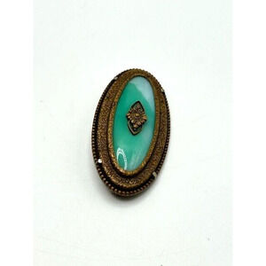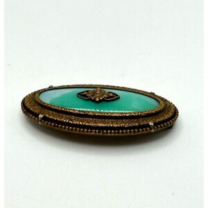 Vintage Brass & Jadeite Glass Art Nouveau Oval Brooch Pin Marked France