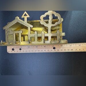 Vintage Brass Key Mail Holder House Tree Fence 5 Hook Hanging Cottage Core Brass