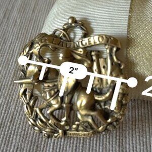 Vintage Brass Knight Plaque Keychain Featuring Sir Launcelot On Horse With Castl