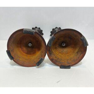 Vintage Brass Koi Dolphin Candlestick Holders Ornate Patina Base Leaf Design