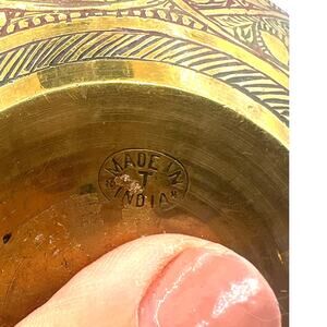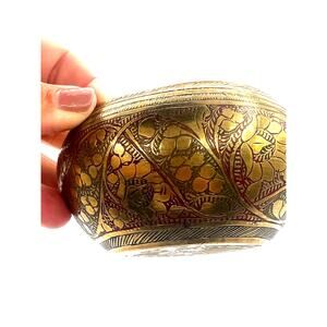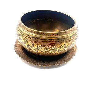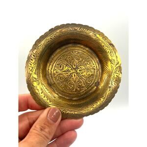 Vintage Brass Lot 2 Bowls 1 Plate Made In India Floral Slightly Colored Red