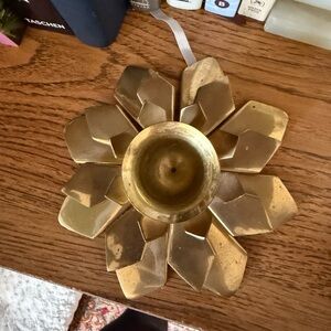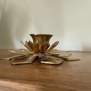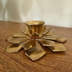 Vintage Brass Lotus Flower Candlestick Holder Gold
