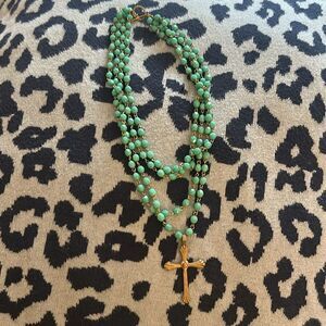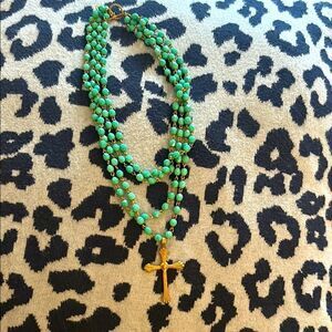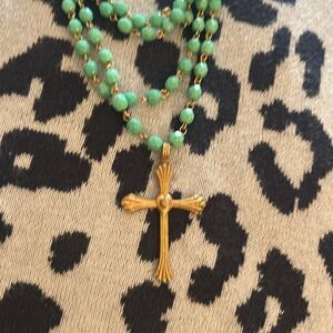Vintage Brass Lucite Cross Drop Pendant Necklace