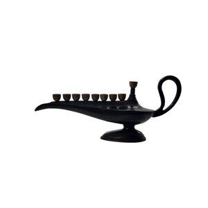 Vintage Brass Menorah Genie Lamp Black for Small Candles Hanukkah