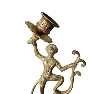 Vintage Brass Monkey Statue Taper Candle Holder with Clawfoot feet