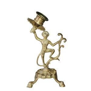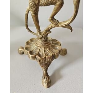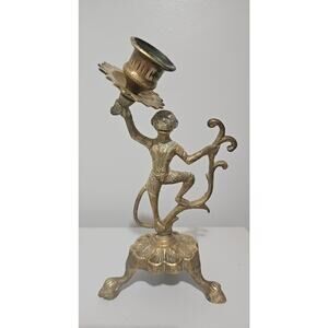 Vintage Brass Monkey Taper Candle Holder Clawfoot Feet Whimsical MCM Art Deco