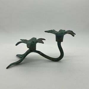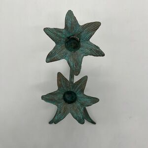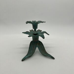Vintage Brass Patina Flower Stem Candlestick Made In India