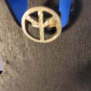 Elegant brass ring featuring a timeless peace sign. Ideal for adding a touch of vintage style to your outfit. Durable and stylish.