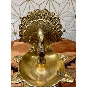 Vintage Brass Peacock Incense Oil Lamp - 6.25" x 2.75"