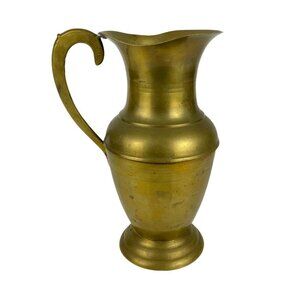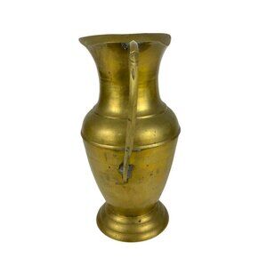 Vintage Brass Pitcher Vase With Handle 9.5 inch Tall Decorative Accent Piece