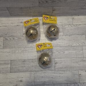 Vintage Brass Plated Christmas Jingle Bell Ornament Set 3 New Old Stock Sleigh