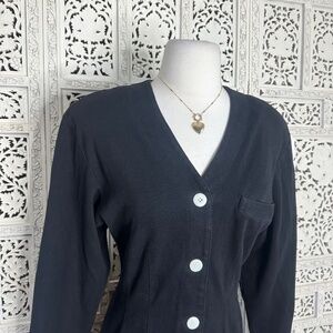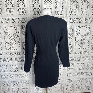 Vintage Brass Plum Nordstrom Black Strong Shoulder Long Sleeve Button Up Dress Sz Small
