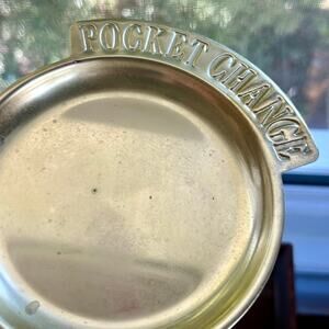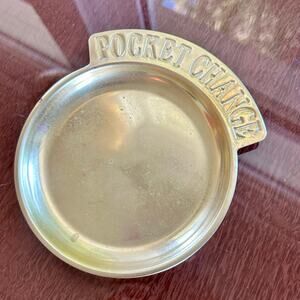 This vintage brass pocket change dish is perfect for holding your loose change, keys, or small trinkets. Measuring 5.5” in length, it features a classic design that adds a touch of vintage elegance to any space. In good condition, this dish is both functional and stylish, making it an ideal addition to your home, office, or entryway.