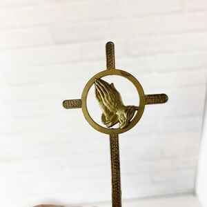 Vintage Brass Prayer Hands Cross Statuette Figure 3 Inch