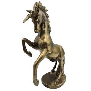 Vintage Brass Rearing Unicorn Figurine With Flowing Mane & Tail