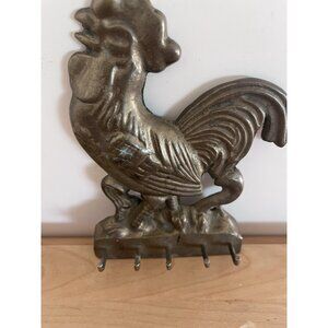 In very good vintage preowned condition a little patina on rooster. Heavy fun and cute rooster key holder with 5 hooks, ready to be mounted on wall or wherever you like. Vintage Brass Rooster Wall Mount Hooks Farmhouse Rustic Kitchen Chicken Décor.