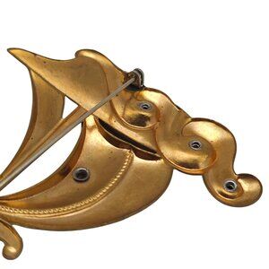 This vintage brass sailboat brooch features a retro silver tone design, perfect for nautical enthusiasts. Measures 3" with intricate wave detailing, making it a charming accessory for any outfit or collection.
