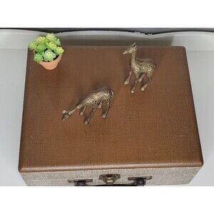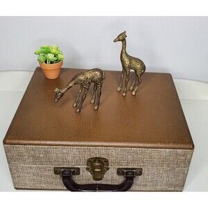 Brass Straight neck giraffe is about 5 1/8" tall and the bending giraffe is about 3 1/8" tall. Both weigh 13.3oz. Need to be polished but in beautiful condition. Comes from a smoke free home.