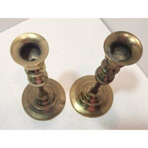 Vintage Brass Taper Round Candlestick Holders 8" Tall Set Of 2 Made in India