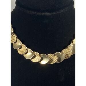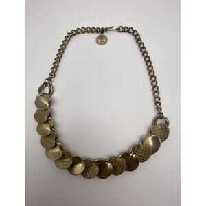 Vintage Brass Tone Heart Leaves Choker Necklace Textured Fall Leaf Linked