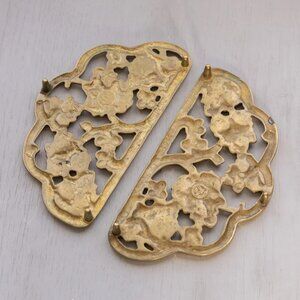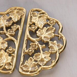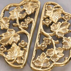 Vintage Brass Trivet Set with Floral and Leaf Designs (Set of 2)