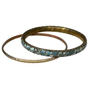 Vintage Brass & Turquoise Chip Bracelet Bangle Set Brass Bracelet Made In India