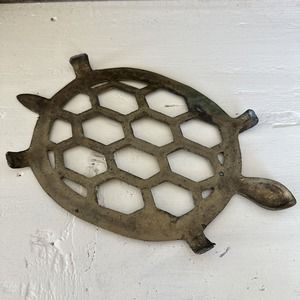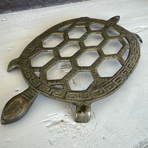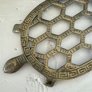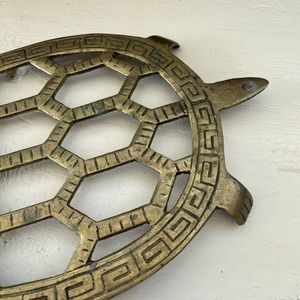 Vintage Brass Turtle Trivet Footed Pot Stand Mid Century Greek Key 10”