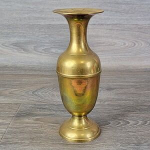 Vintage Brass Vase Small Gold Toned Indie Boho Metal Brass Flower Floral Small 8