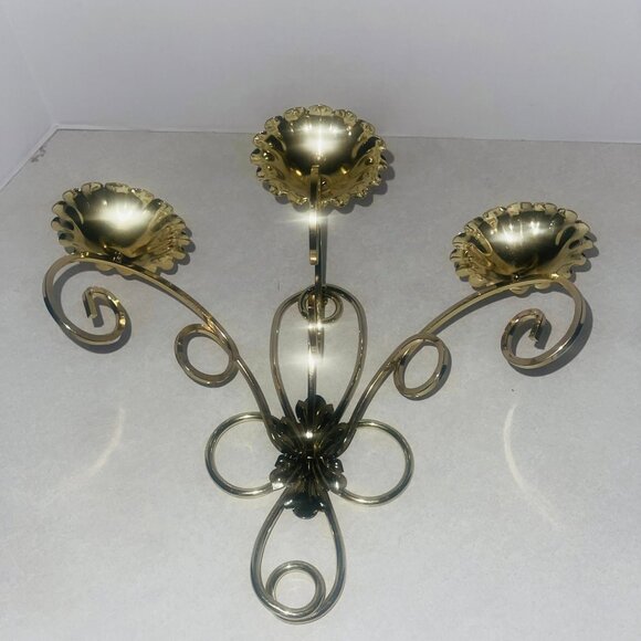 Vintage Brass Wall Mount Candelabra Three Arm , Hollywood Regency HOMCO