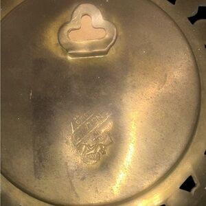 • Materials: Brass frame with raised copper-tone center