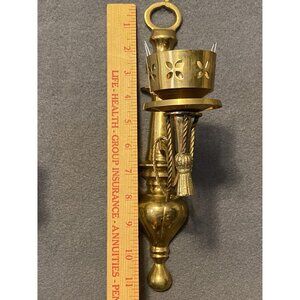 Vintage Brass Wall Sconce Candle Holders 2-Piece Set MCM Regency Made in India