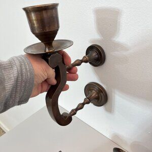 Vintage Brass Wall-Mounted Candle Holders Made In India Ornate Design Rustic Dec