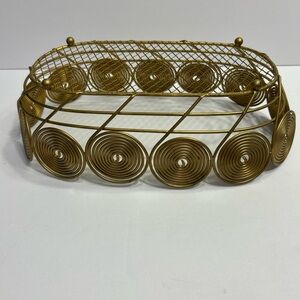 Vintage Brass Wire Coiled Metal Wicker Style Decorative Basket 12.25"x4”