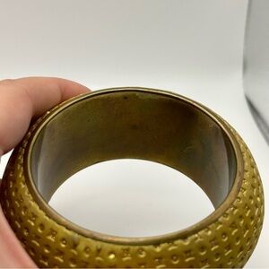 Vintage Brass Yellow Puffy Fabric Bangle with Gold Square and Circle Accents