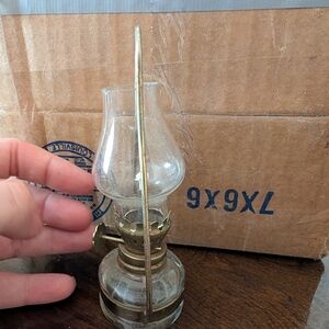 Illuminate your space with this elegant vintage oil lamp. Featuring a classic brass and clear glass design, it adds a touch of nostalgia to any room.