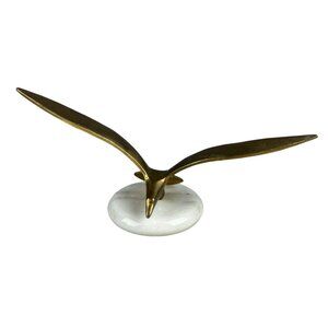 Vintage Brass bird in Flight on Marble Base Paperweight