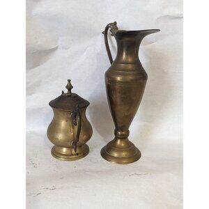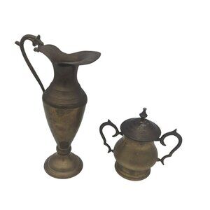 Vintage Brass pitcher and sugar bowl with lid Retro, Farmhouse MCM Granny