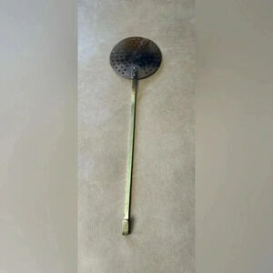 Crafted with attention to detail, this strainer skimmer is not only functional but also adds a touch of vintage charm to any kitchen. The brass material ensures durability and longevity, making it a great investment for any home cook or collector. This item is a great addition to any kitchen tool collection and is sure to impress with its unique design and practical use.